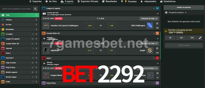 O bet2292 oferece uma grande seleção de opções de apostas em e-sports com probabilidades competitivas